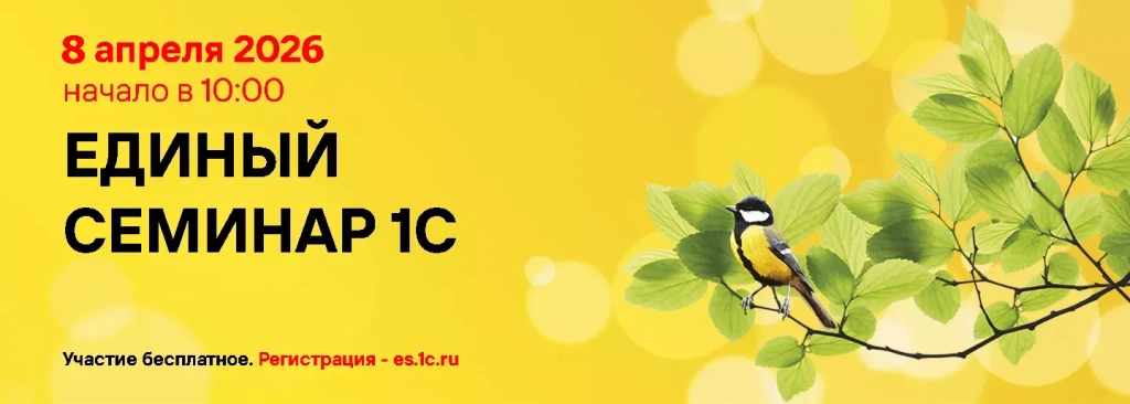 Подключайтесь к Единому онлайн-семинару 1С и будьте в курсе актуальных изменений для бизнеса и бухгалтерии.