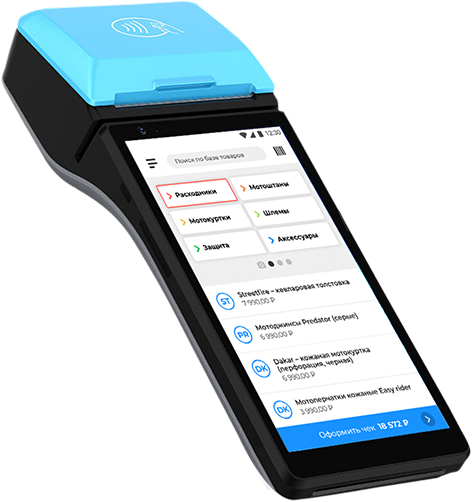 принтером для печати чеков, аккумулятором и слотом для sim-карты.